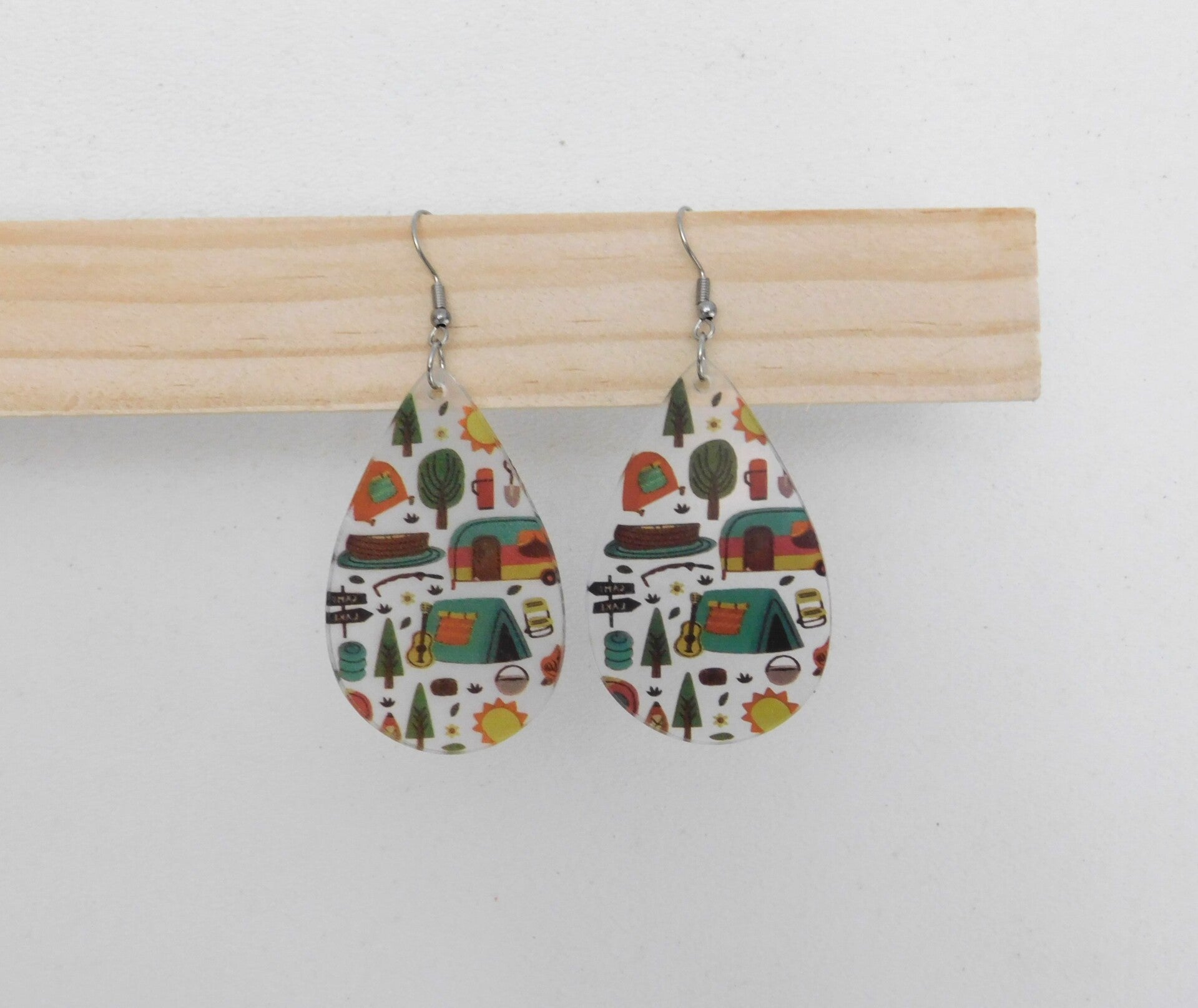 Acrylic camping earrings. These pretty earrings are transparent and very lightweight.⛺